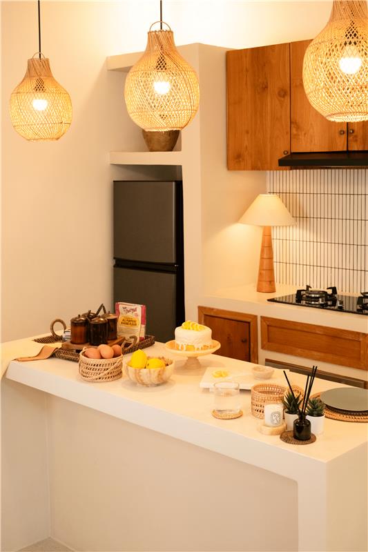 Warm light and natural textures set the tone for everyday living. Discover handwoven rattan pieces and marble accents designed to bring calm, texture, and timeless style to your kitchen.