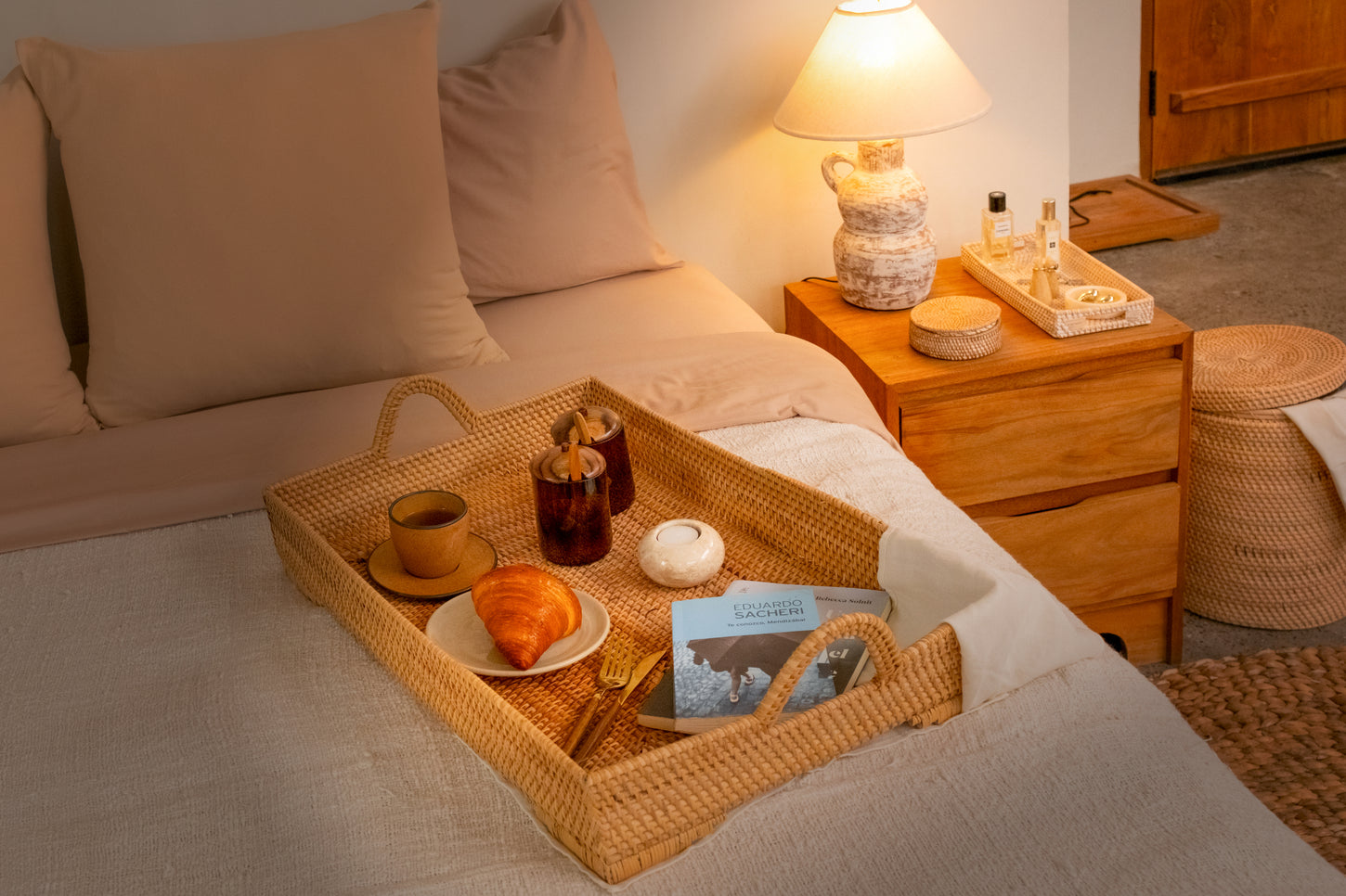A small yet impactful way to soften your bedside decor with woven warmth.