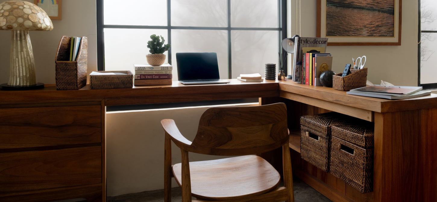 Welcome to our idea of office storage - Intentional, calm, and natural—a place where everything has its purpose, without the clutter of throwaway plastic. That’s why we choose rattan, a material that is not only beautiful and durable but also woven by hand, connecting each piece to the craft and care of the makers behind it.