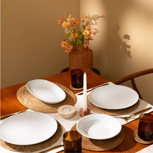 Tip: Select a wicker woven placemat that frames your plate with ample space around it, ensuring a balanced and polished look while highlighting the craftsmanship of the handwoven rattan design.