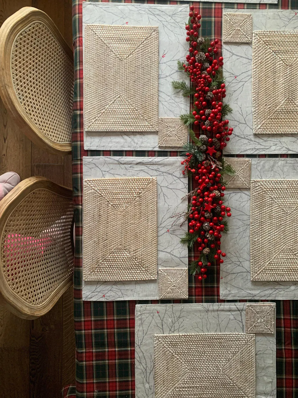 This woven placemats rectangular comes with a holder. This item is a beautiful addition for your table decor, not just to keep your table protected, the holder feature will make sure your table is organized. This item is carefully handcrafted by Indonesian craftsmen. They make sure every detail meets the highest quality standard in a variety of color washes to be able to achieve your perfect match.
