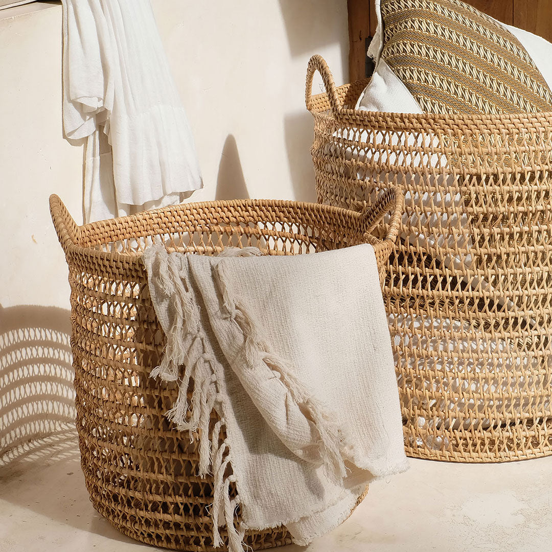 If you've ever wondered how to properly showcase your baskets for blankets in the living room to add a touch of charm to your space, you're in the right place. In this blog post, we'll share creative and stylish blanket storage ideas to display your blankets using some of our exquisite home decor pieces